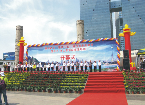5月14日,“振興老區(qū) 服務三農(nóng) 科技列車沂蒙行”活動在臨沂市舉行。山東省委常委、副省長孫偉、省政協(xié)副主席李德強出席開幕式?萍疾奎h組成員、紀檢組組長郭向遠出席開幕式,科技部等部委有關(guān)領(lǐng)導、科技列車專家服務團全體成員,臨沂市副市長左沛廷等有關(guān)領(lǐng)導以及社會各界代表也參加了開幕式。
