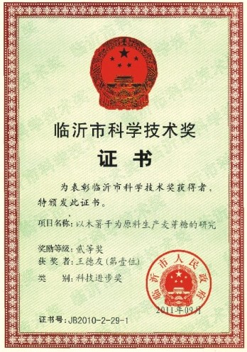 日前,集團(tuán)自主開發(fā)的《以木薯干為原料生產(chǎn)麥芽糖的研究》項目獲2011年度臨沂市科技進(jìn)步二等獎。
