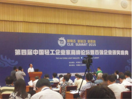 612日,由中國輕工業(yè)聯(lián)合會主辦的“第四屆中國輕工企業(yè)家高峰論壇暨輕工百強(qiáng)企業(yè)頒獎(jiǎng)盛典”在北京京西賓館舉行。本屆論壇以“新思路、新驅(qū)動、新常態(tài)”為主題,來自政府部門、協(xié)會、媒體、企業(yè)及各地方輕工業(yè)組織共500余人參加了會議,新浪網(wǎng)等網(wǎng)絡(luò)媒體進(jìn)行了全程報(bào)道。